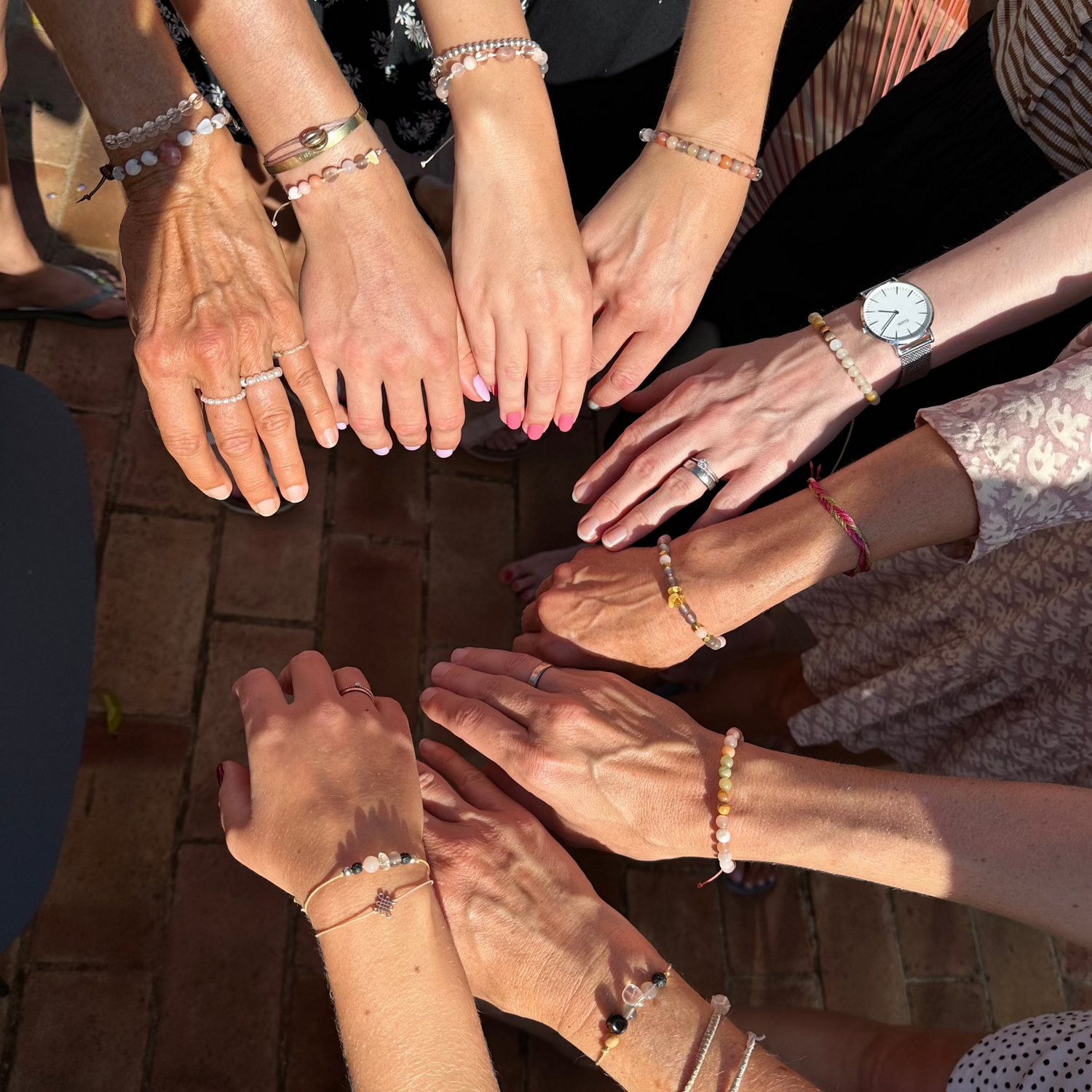 12 Frauen haben unter der Sonne Portugals und mit Blick in die Berge gemeinsam ihr ganz persönliches Armband kreiert. Hier ist nicht nur ihr ganzes Herzblut hineingeflossen, sondern es wurden auch all die wunderschönen gemeinsamen Momente und Erinnerungen darin eingefangen und gespeichert.