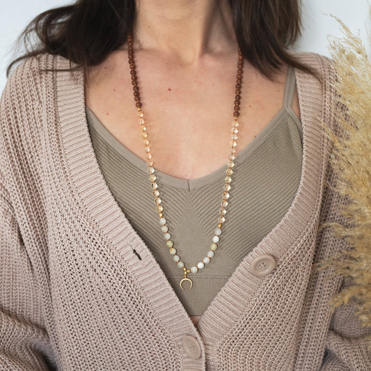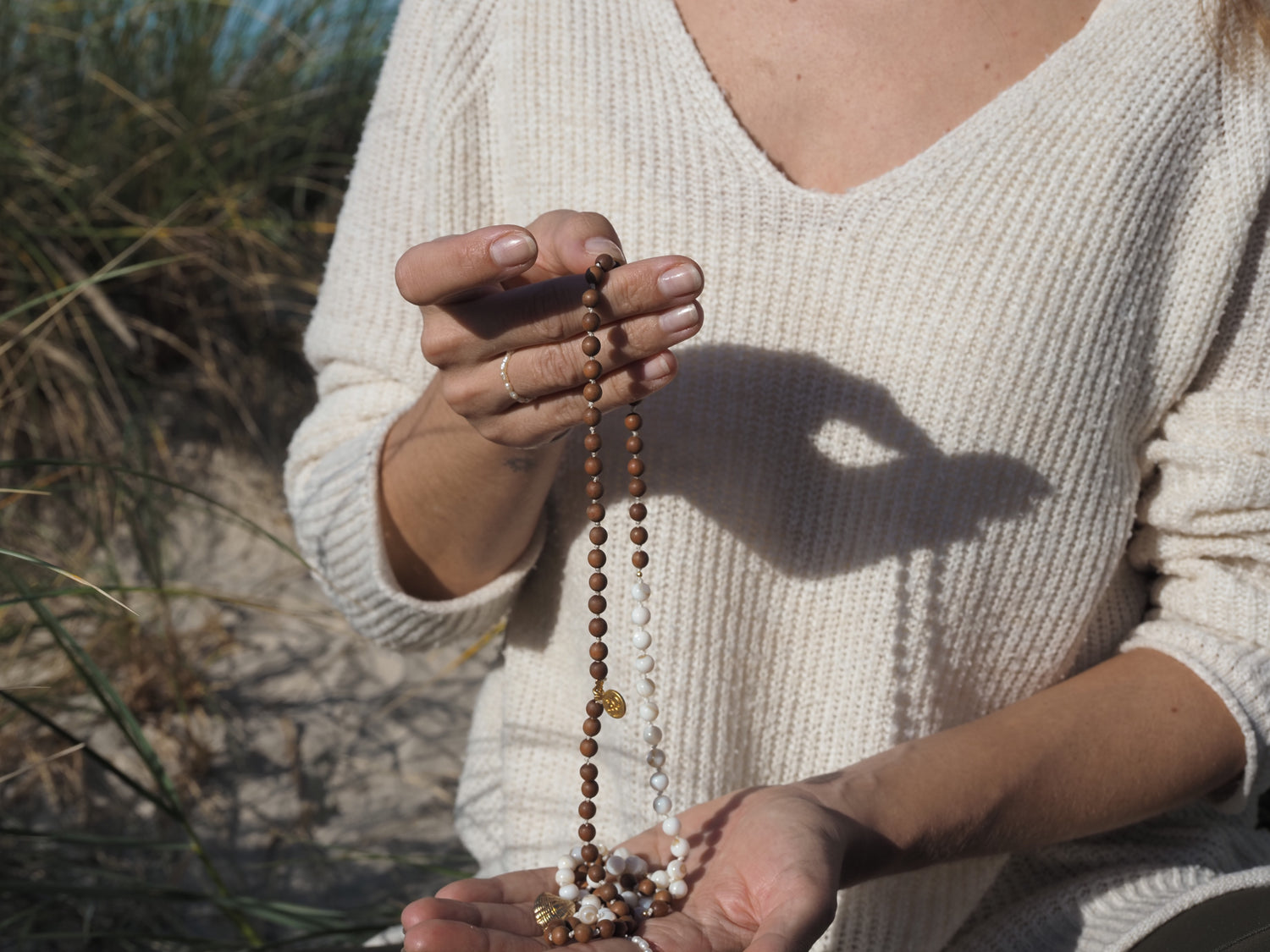 Wenn dich deine Mala auch im Alltag z.B. als Schmuckstück begleiten darf, erinnert sie dich liebevoll daran, dass alles, was du brauchst, bereits in dir ist. Sie ist deine Begleiterin, die dir immer die Möglichkeit schenkt, einen Moment inne zu halten und sich an deine Wünsche/Ziele zu erinnern.